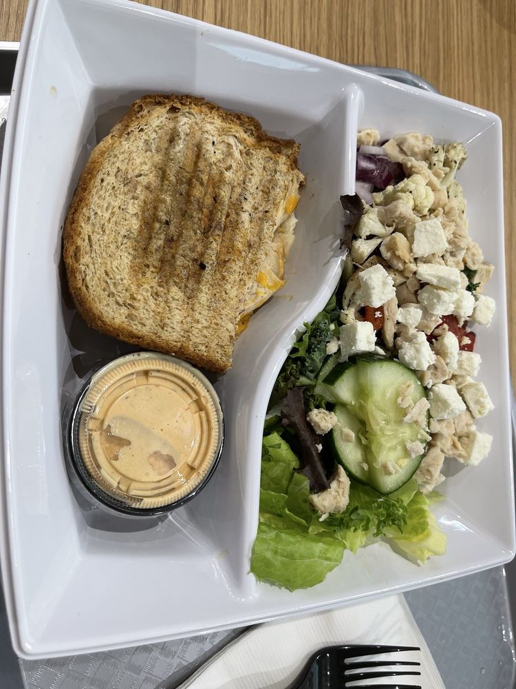 - Farmers Market Salad: A hearty mix of roasted turkey, butternut squash, and feta on a super greens base, complemented by balsamic vinaigrette.